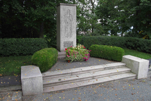 Marlesreuth, Stadt Naila, Landkreis Hof, Oberfranken, BayernPLZ 95119 Kleine Anlage mit zentraler Steinstele und gravierter Inschrift am Eingang zu Pfarrkirche und Friedhof, etwas abseits der Durchgangsstraße am Berg gelegen.