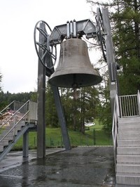 unter der Glocke: Jubiläumsglocke, gewidmet den 11 Ländern der Arge-Alp gestiftet von den Gemeinden aus Bayern, Südtirol und Tirol zu Ehren von Alfons Goppel, Silvius Magnago und Eduard Wallnöfer