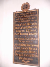 Tafel 1813-1871: Aus diesem Kirchspiel starben mit Gott für König und Vaterland in den