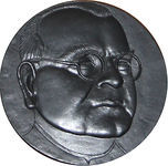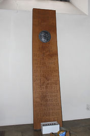 Zum Gedenken an Pfarrer Strohmeyer hat sein ehemaliger Schüler, Bildhauer Pfof. Franz Gutmann dieses Totenbrett mit seinem Bild geschaffen.