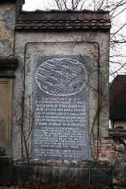 Die letzte Ruhestätte fand er auf dem Friedhof von St. Trudpert, links von Haupteingang.
