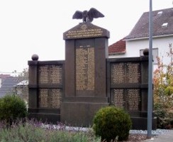 An der Abzweigung Kirchstraße/Unterdorfstraße befindet sich in einer kleinen Grünanlage unweit der Kirche das Ehrenmal für die Opfer aus beiden Weltkriegen. Das dreiteilige Denkmal aus schwarzem Stein mit goldener Schrift enthält im mittleren Teil die Namen der im 1. Weltkrieg und an den Seiten die im 2. Weltkrieg Gefallenen und Vermissten aus der Gemeinde. Der Mittelteil wird oben durch einen Bronze-Adler mit ausgebreiteten Schwingen und an den beiden Seitenteilen mit je einer Steinkugel verziert.