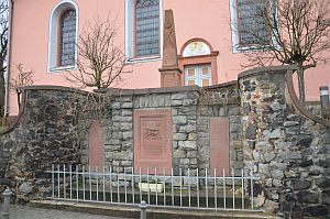 befindet sich ein Ehrenmal für die Gefallenen des 1. Weltkriegs. Es besteht aus drei Sandsteintafeln,
