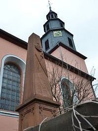 Unterhalb der evangelischen Kirche, an der Frankfurter Straße, durch ein eisernes Gitter geschützt,
