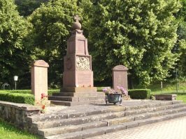 Errichtet aus Sandsteinquadern im Jahr 1920 für die Gefallenen des Ersten Weltkriegs, erweitert im Jahr 1952