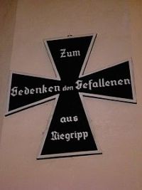 Denkmal: Den Gefallenen. Die Gemeinde Niegripp Denkmal Plakette: Zum Gedenken den Gefallenen aus Niegripp Gedenkkreuz: Zum Gedenken den Gefallenen aus Niegripp Tafel 1815 Gefallene: Aus diesem Kirchspiel starben für König und Vaterland (Namen) Tafel 1815 Teilnehmer: Mit Gott für König und Vaterland stritten aus der Gemeinde Niegripp in den Befreiungskriegen d. J. 1813-15 und kehrten aus dem heiligen Kampf zurück: