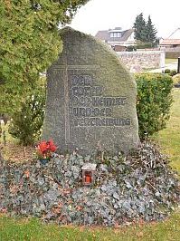 erinnern ein Natur-Gedenkstein und ein schmiedeeisernes Kreuz mit Beschriftung an die Opfer der