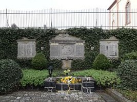 Gedächtnistafel für ein Opfer des Krieges 1870/71 mit nahezu nicht mehr lesbarer Inschrift