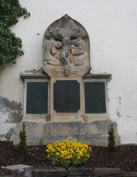 Denkmal an der Kirche; zusätzlich Hinweise zu Soldaten von privaten Gedenksteinen