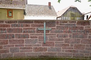 Friedhof: In der Trauerhalle des Friedhofs ist an der Wand eine Sandsteintafel für die Opfer der Kriege angebracht. An der Friedhofsmauer erinnert noch eine Gedenktafel für einen im 2. Weltkrieg gefallenen und einen vermissten Soldaten.