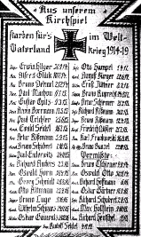 zwei Tafeln. Eine mit den Namen der Opfer des 1. Weltkriegs aus sechs Dörfern und die zweite mit den