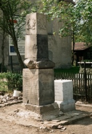 zerstört. Heute sind sie behelfsmäßig auf dem Friedhof zusammengestellt. Erhalten hat sich die