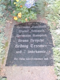 Kriegsgräberstätte: 1.Kor.13.8. (Namen) und zwei Unbekannte. Unsere Liebe höret nimmer auf