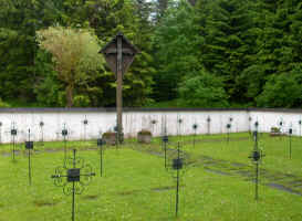 Soldatenfriedhof auf ehemaligem Pestfriedhof. Die meisten der hier Begrabenen starben in den letzten Kriegstagen bei Kämpfen um den Fernpaß.