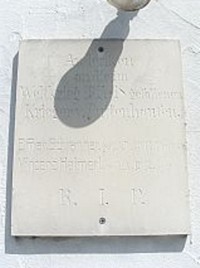 Puttenhausen, Stadt Mainburg, Landkreis Kelheim, Niederbayern, BayernPLZ 84048 Gedenktafel aus Stein mit Inschrift und Namen der Opfer des 1. Weltkrieges, an der Außenmauer der Ortskirche