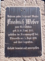 Gefallen und dort begraben. Unserem lieben Sohn (Name) zum Gedächtnis, verheiratet am 4.2.1939 in Groß-Umstadt. Tapfer und Treu. Die Eltern: Anton und Louise Weber Nonnenhof.