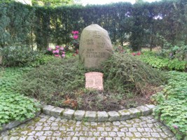 Findling auf dem Friedhof. Davor Ehrentafel mit den Angaben der Opfer des ersten Weltkrieges.