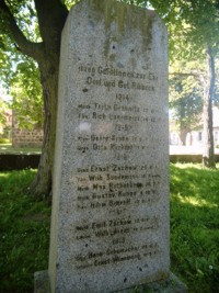 Denkmal 1. Weltkrieg, aufgerichtete Granitplatte; Soldatengrab; Gedenken auf Familiengrab