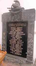 Die Gedenktafel für die Gefallenen des 1. Weltkriegs ist in einem Seitenraum der Kirche abgestellt. Die Namen der Gefallenen des 2. Weltkriegs werden seit einiger Zeit von den Einwohnern gesammelt, dies ist aber noch nicht abgeschlossen. Das Zivilopfer O. Schmollack wurde vor den Augen seiner Familie von einem russischen Soldaten erschossen. Die zwölf Gefallenen im Soldatengrab sollen alle unbekannt sein. Zusätzliche Informationen in Blau vom Volksbund Deutsche Kriegsgräberfürsorge: (www.volksbund.de/graebersuche)