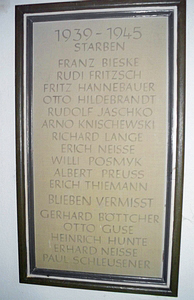 Tafel 2. Weltkrieg: 1939-1945 starben: (Namen) blieben vermisst (Namen)