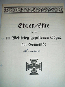 Ehrenliste: Ehren-Liste für die im Weltkrieg gefallenen Söhne der Gemeinde Rönnebeck