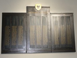 In der Friedhofskapelle Gedenktafeln an der Wand für die Vermißten des 2. Weltkrieges aus der Stadt Rottweil mit