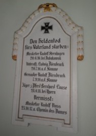 Gedenktafel in der Kirche: Den Heldentod fürs Vaterland starben... (Namen)