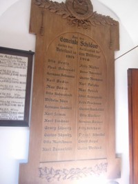 Tafel 1. Weltkrieg: Aus der Gemeinde Schildow starben den Heldentod fürs Vaterland in dem