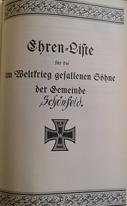 Ehrenliste: Ehren-Liste für die im Weltkrieg gefallenen Söhne der Gemeinde Schönfeld