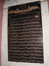 Tafel 1. Weltkrieg: 1914-18 Die Gemeinde Schorstedt ihren lieben Gefallenen zum ehrenden