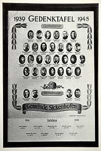Tafel: 1939 GEDENKTAFEL 1945 Gefallene (Namen) Vermisste (Namen) Gemeinde Sickenhofen