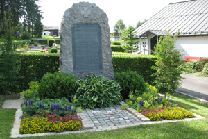 Granitblock mit gravierter Steinplatte vor der Friedenskirche Sigmundsgrün/Faßmannsreuth.