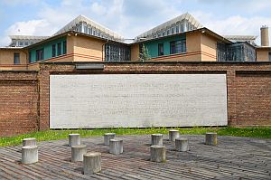 Gefängnismauer: 1933-1945 IHR DIE DAS LEBEN GABT FÜR DES VOLKES FREIHEIT UND EHRE NICHT