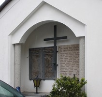 Ausserhalb vom Friedhof Gedenktafeln in einer Nische an der Rückseite der Friedhofskapelle; zusätzlich