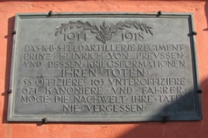 St. Johannis (Friedhof: 8. Feldartillerieregiment), Stadt Nürnberg, Mittelfranken, BayernPLZ 90419 Gedenktafel aus Metall an der Außenmauern der St. Johanniskirche.