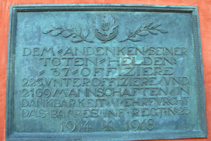BAY. 8. RESERVEDIVISION DEM ANDENKEN SEINER TOTEN HELDEN 37 OFFIZIERE 225 UNTEROFFIZIERE UND 2169 MANNSCHAFTEN IN DANKBARKEIT U. EHRFURCHT DAS BAY. RES. INF. REGT. N 23 1914 1918