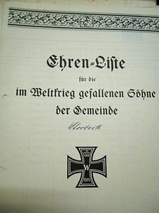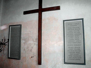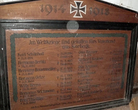 Gedenktafeln in der Kirche. Ehrenliste für die Gefallenen des 1. Weltkriegs.