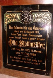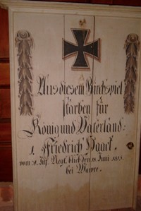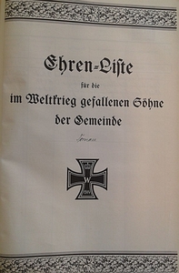 Gedenktafeln in der Kirche. Namenslisten 1. und 2. Weltkrieg aus der Dorfchronik. Ehrenliste für die Gefallenen des 1. Weltkriegs.