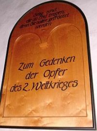 1.Weltkrieg: (Namen) Niemand hat grössere Liebe Denn die dass er sein Leben lasset für seine Freunde. 1921 2.Weltkrieg: Selig sind die da Leid tragen, denn sie sollen getröstet werden. Zum Gedenken der Opfer des 2. Weltkrieges