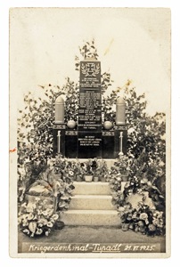 ZUR ERINNERUNG AN DIE IM WELTKRIEGE 1914 – 1918 GEBLIEBENEN HEIMATSÖHNE DER GEMEINDE TUPADL. (Namen) GEWIDMET DURCH DIE BEWOHNERSCHAFT VON TUPADL. Am Sockel DIE HEIMAT IHREN TOTEN HELDEN-SÖHNEN. BEDECKT MIT LORBEER UND BETAUT MIT TRÄNEN.