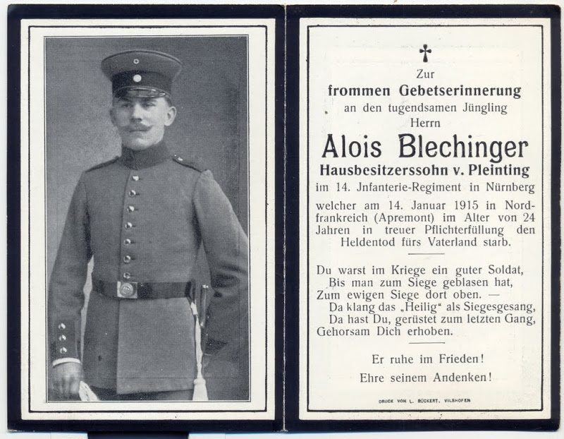 Welcher im Alter von 24 Jahren in treuer Pflichterfüllung den Heldentod fürs Vaterland starb.