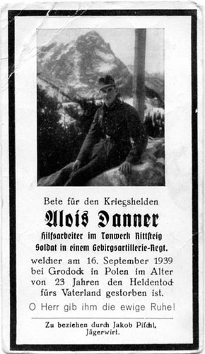 Hilfsarbeiter im Tonwerk Rittsteig. Welcher im Alter von 23 Jahren den Heldentod fürs Vaterland gestorben ist.