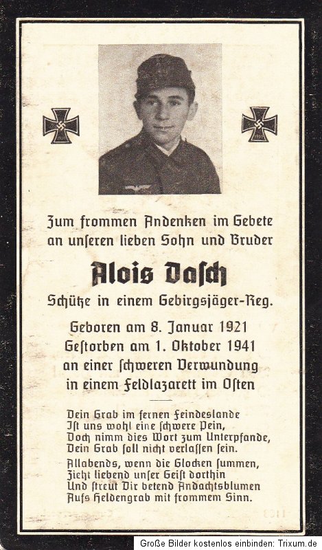 Gestorben an einer schweren Verwundung in einem Feldlazarett im Osten