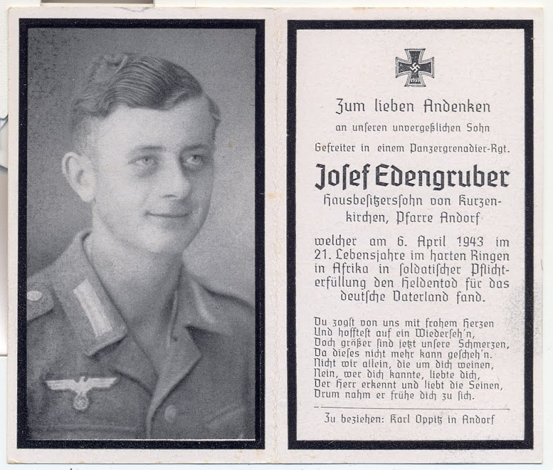 Im 21. Lebensjahre im harten Ringen in Afrika in soldatischer Pflichterfüllung den Heldentod für das deutsch Vaterland fand