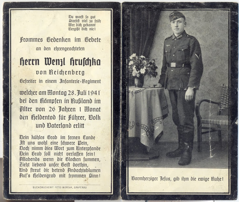 Welcher am Montag bei den Kämpfen in Russland im Alter von 26 Jahren 1 Monat den Heldentod für Führer, Volk und Vaterland erlitt