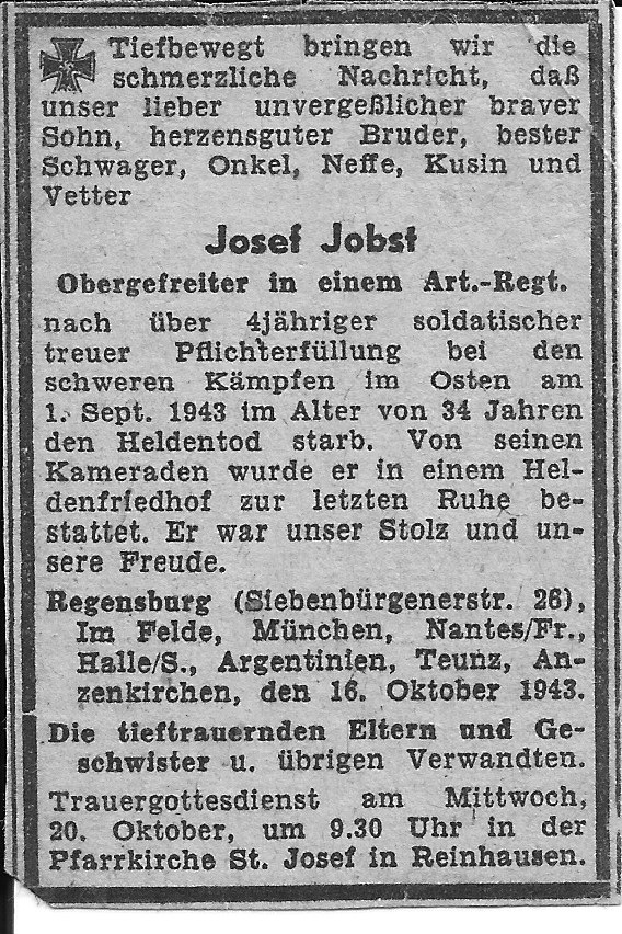 34 Jahre, aufgeführt beim Denkmal Runding, Kreis Cham, Bayern