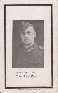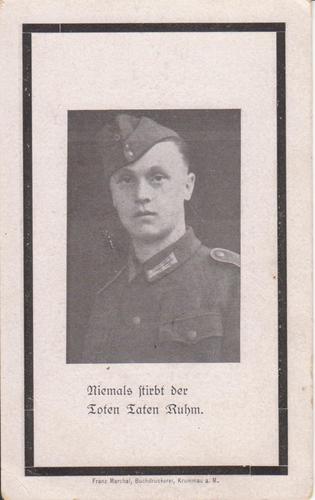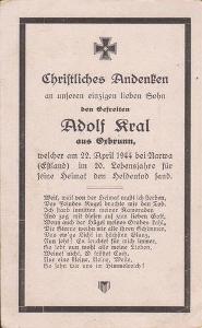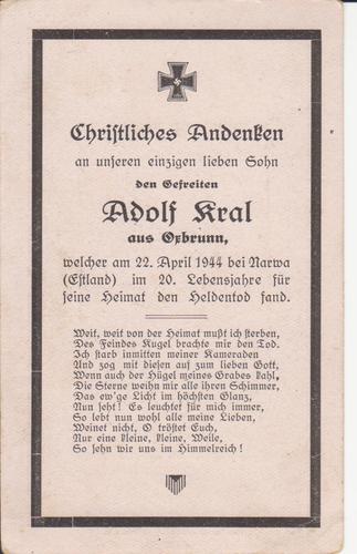 Christliches Andenken an unseren einzigen lieben Sohn den Gefreiten Adolf Kral aus Oxbrunn