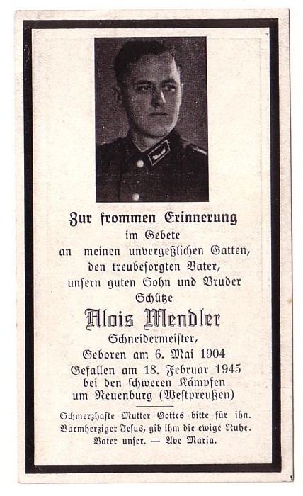 Schneidermeister. Gefallen bei den schweren Kämpfen um Neuenburg (Westpreußen)