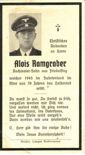 Bachmaier-Sohn aus Friedolfing der im Alter von 39 Jahren den Heldentod erlitt