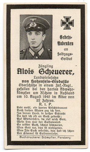 Landwirtssohn von Hohenfels. Gefallen bei den harten Abwehrkämpfen um Rschew in Russland im Alter von 22 Jahren